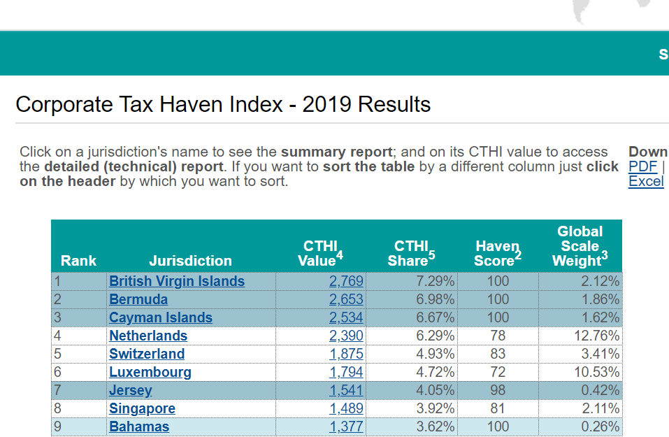 Países Bajos es el cuarto mayor «facilitador» del mundo para la evasión de impuestos corporativos por volumen y el segundo globalmente según el Corporate Tax Haven Index 2019 .