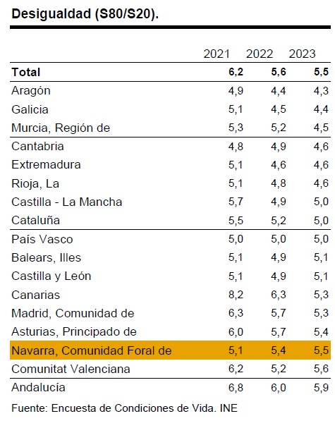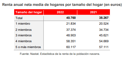Que las cifras no nos engañen: los hogares navarros no ganan esos casi 50.000 €/año que dicen las estadísticas y que usamos para decir eso de que Navarra va muy bien. La mayoría de ellos no ganan ni la mitad de eso. Es el precio a pagar por ser una de las comunidades con una desigualdad mayor, que ese 20 superior del Ratio distorsiona todo lo demás.