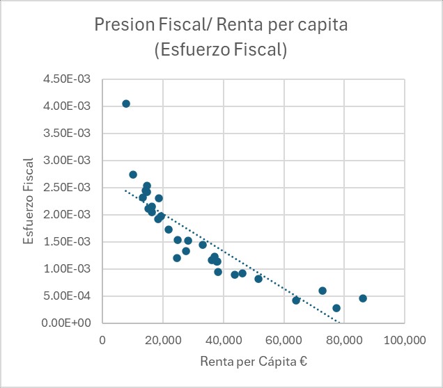 Y que pasa si ahora cogemos y pintamos el «esfuerzo fiscal» frente a la renta per capita? Pues pasa esto!